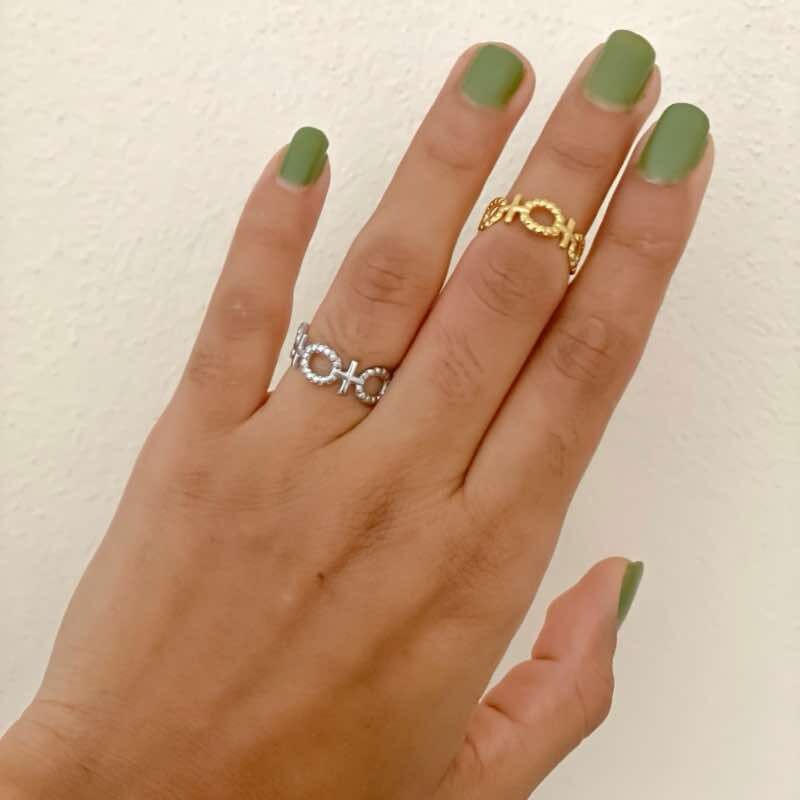 Descubra a versatilidade e elegância dos nossos anéis ajustáveis de aço inoxidável na cor dourada.