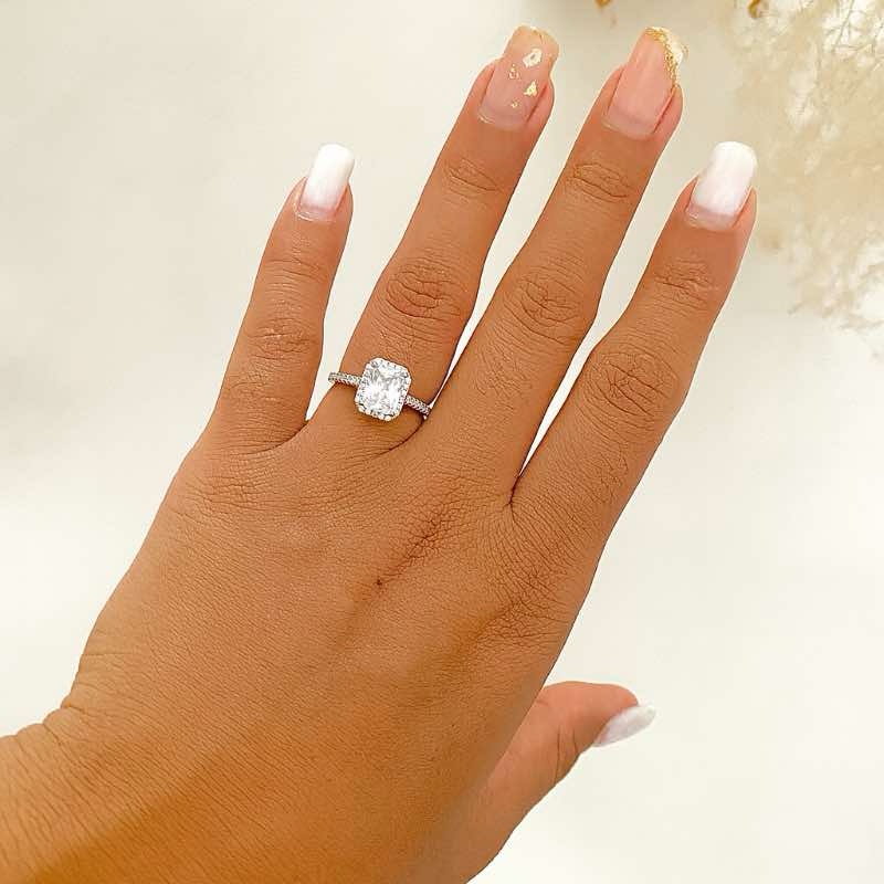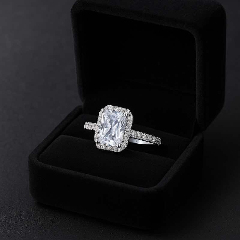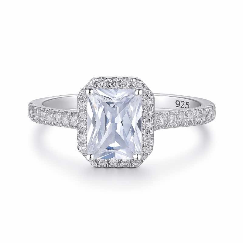 Este anel encantador foi desenvolvido em prata de lei 925, oferecendo durabilidade, brilho e um acabamento impecável. Seu design é realçado por uma pedra central retangular lapidada, envolvida por um halo de microzircônias cuidadosamente cravejadas, que também se estendem pela lateral da haste, conferindo ainda mais brilho e sofisticação à peça.