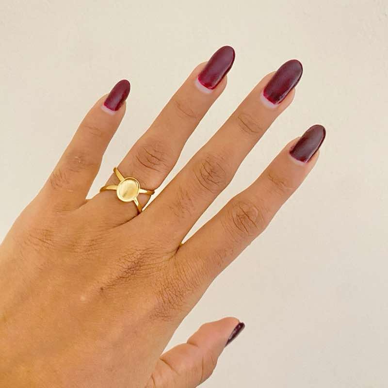 Anel Minimalista Oval Dourado em Aço Inoxidável