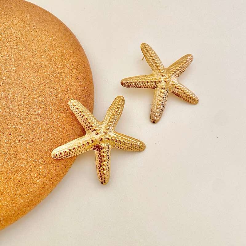 Leve o charme do mar para o seu look com este brinco em formato de estrela-do-mar, disponível na cor dourada.