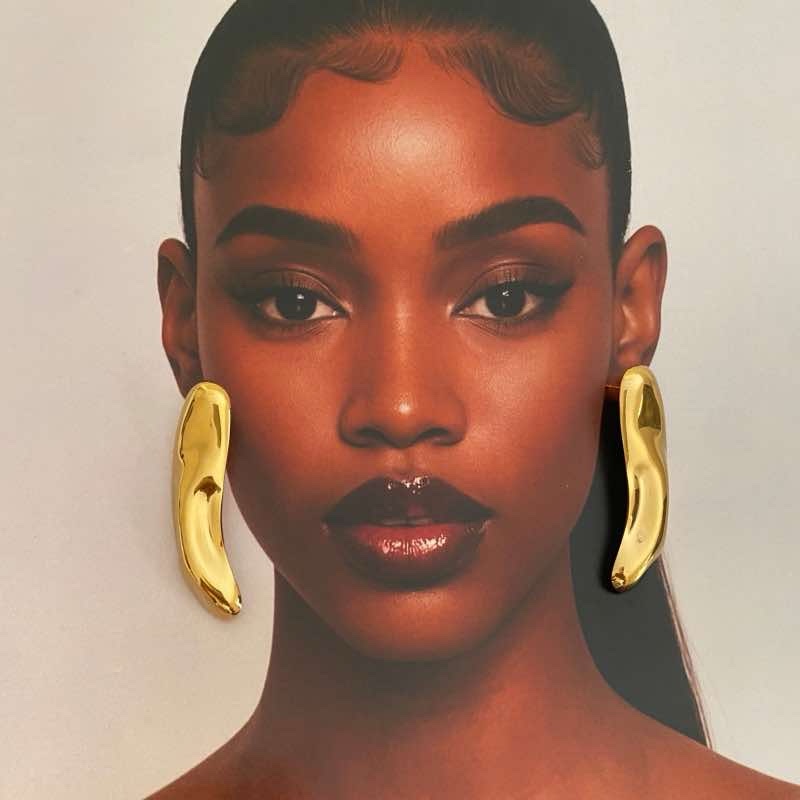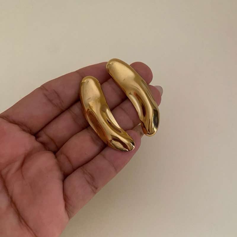 brincos Alongados Esculpidos Dourados combinam linhas orgânicas fluidas com um acabamento espelhado intenso, criando uma peça marcante e sofisticada. Seu formato alongado e assimétrico valoriza o contorno do rosto e adiciona um toque artístico ao look.
