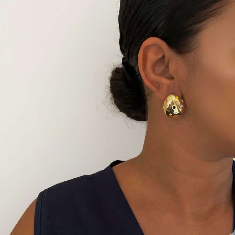 Os Brincos Oval Dourado com Pedras Coloridas são a escolha perfeita para quem gosta de unir sofisticação com um toque vibrante de cor.