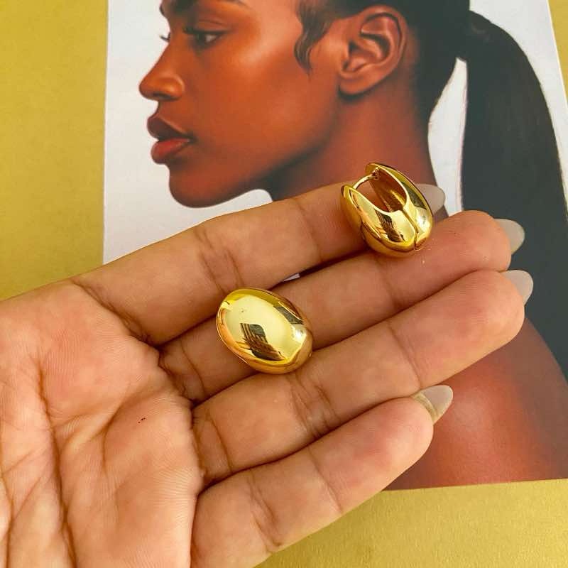 Os Brincos Oval são a escolha perfeita para quem deseja destacar-se com um acessório elegante e moderno. Com seu design oval liso e acabamento dourado polido, eles refletem a luz de forma sofisticada, criando um efeito luxuoso que valoriza qualquer look.