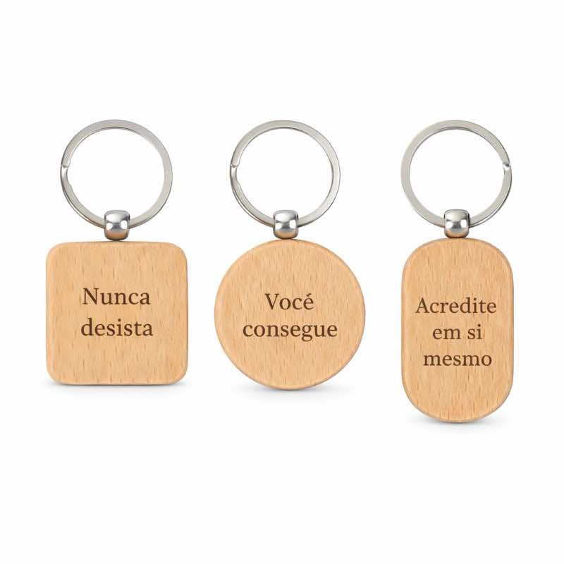 Produzido em madeira natural, o chaveiro possui acabamento liso, toque agradável e gravação precisa, garantindo durabilidade e boa leitura do desenho ou texto. Seu design leve e compacto é ideal para uso diário em chaves de casa, carro, mochila ou bolsa.