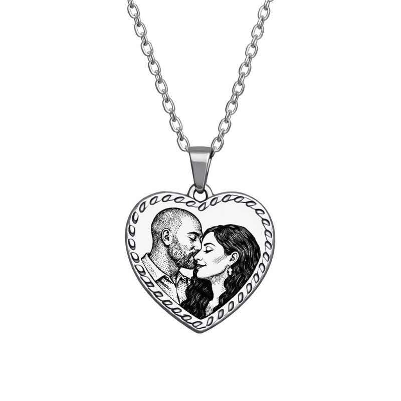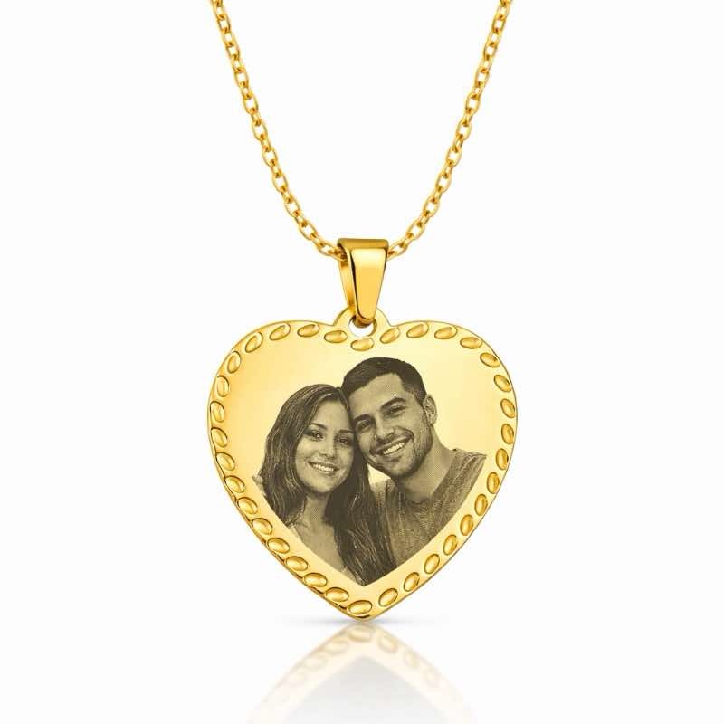 Colar com pingente em formato de coração personalizado com gravação de foto.