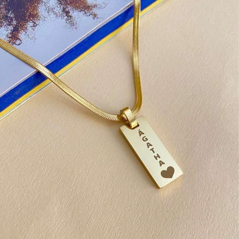 Colar Com design malha e chapa retângulo para personalizares como queres, podes escolher o nome que quiseres, se quiseres esse colar mas com desenho diferente podes entrar em contacto e nos mostrar a sua proposta para confirmarmos se podemos fazer pra si.