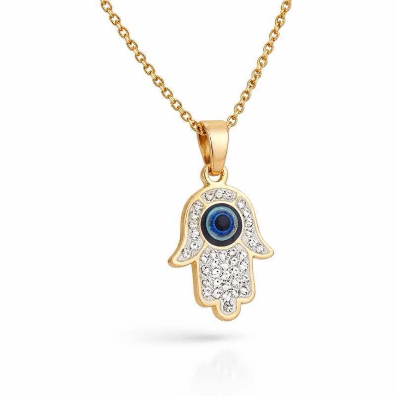 Colar Mão de Fátima com Olho Grego em Aço Inoxidável com Zircônias