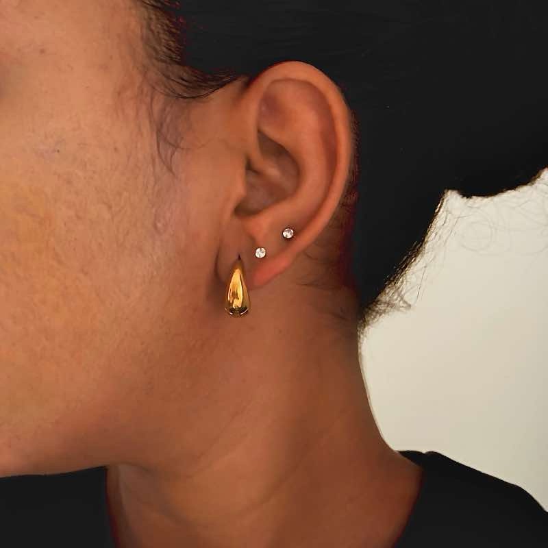 Mini argolas estilo Chubby Hoop com formato ovalado e volume robusto, oferecendo um visual moderno e elegante. Fabricadas em aço inoxidável, são duráveis, hipoalergênicas e estão disponíveis nos clássicos tons dourado e prateado. Perfeitas para um toque de sofisticação discreta no dia a dia ou para compor um mix de brincos.
