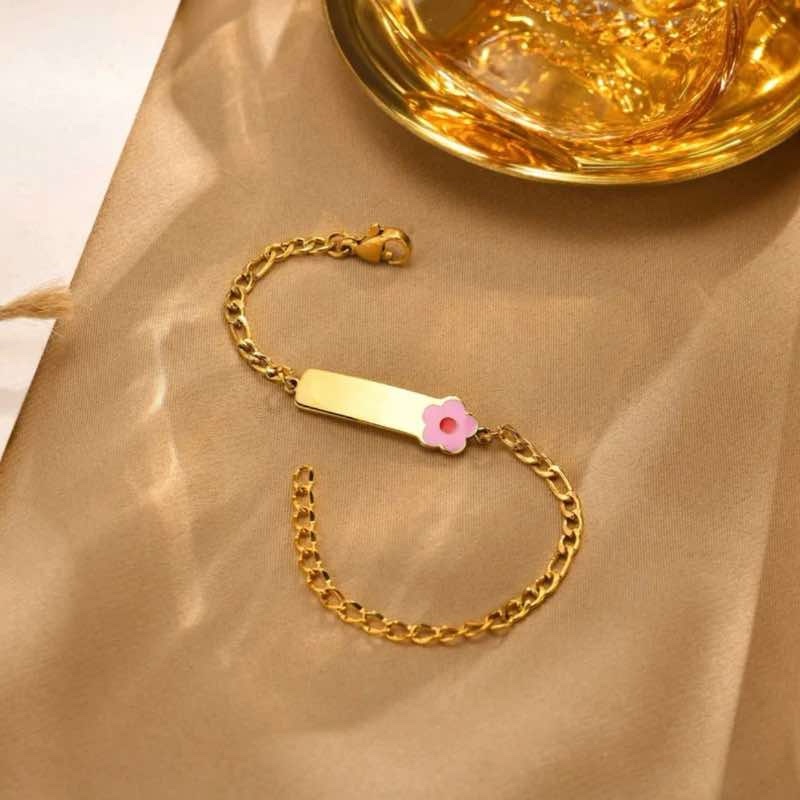 A Pulseira Infantil com Flor Rosa é o acessório perfeito para acompanhar os primeiros momentos de estilo e personalidade das crianças.