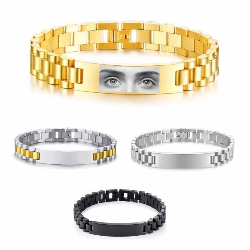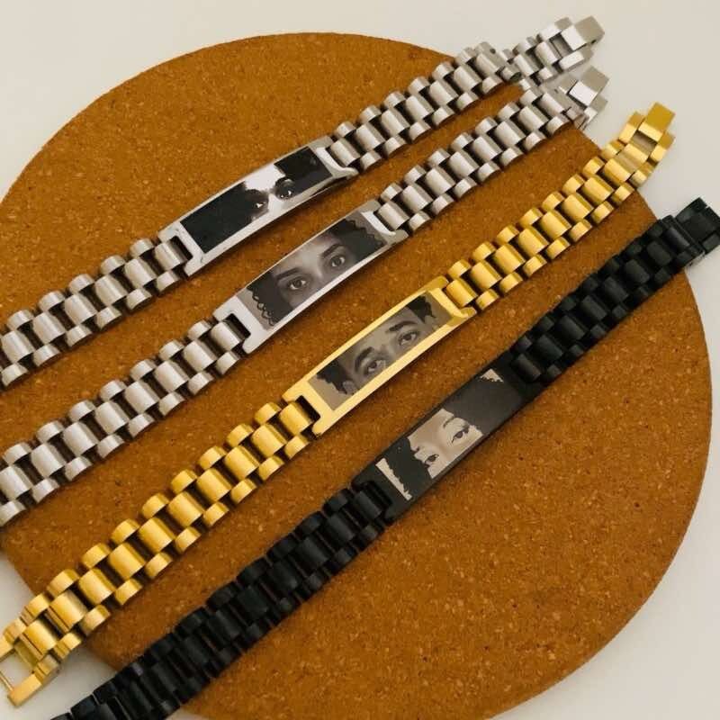 Esta pulseira é confeccionada em aço inoxidável de alta qualidade, garantindo resistência, durabilidade e brilho duradouro. O destaque está na placa central, onde é possível aplicar uma gravação fotográfica em alta definição — geralmente com o olhar de alguém especial, tornando cada peça verdadeiramente única.