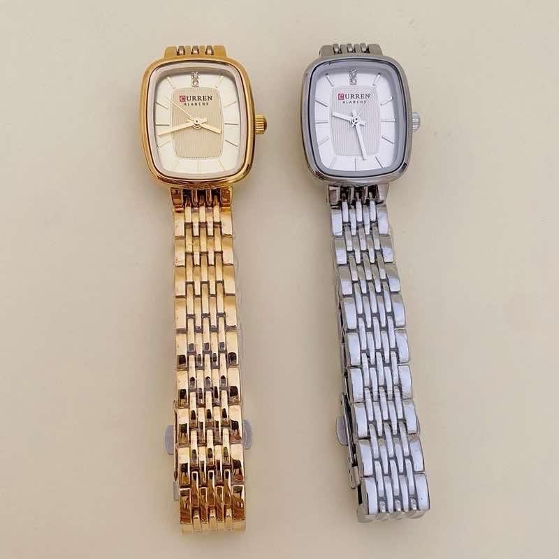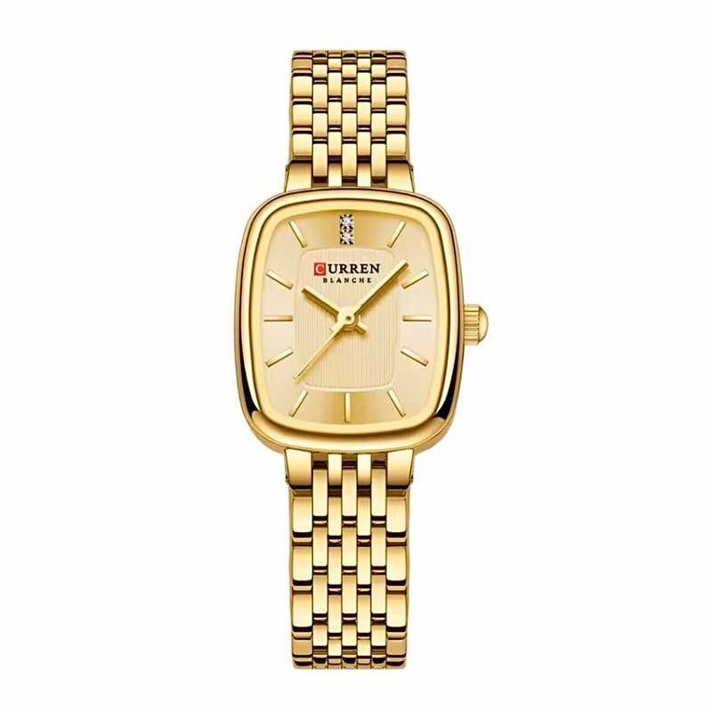 Um relógio sofisticado e moderno da linha Curren Blanche, disponível em dourado ou prateado, feito em aço inoxidável de alta durabilidade, ideal para quem busca estilo e praticidade no dia a dia.